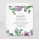 Um convite à festa de formatura, moderno e elegante, de 2022, com eucalipto botânico verde suculento em verde e púrpura. Esta design de tendências é perfeita para anunciar a sua festa de formando e convidar os seus convidados. A design tem uma tipografia moderna sobre um fundo branco com texto fácil de editar