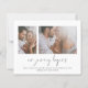 Uma alternativa de orçamento com boa relação custo-benefício em um tamanho menor de 4,5 x 5,6” semi-brilho 110lbs de peso, que é de espessura semelhante a um cartão postal (no entanto, não é adequado para uso como cartão postal). POR FAVOR, OBSERVE que há UM por folha. Orçamento 2 Anúncio de Noivado de Viagem Fotográfica. Elegância moderna para anunciar seu noivado. Basta substituir as duas fotos de amostra pelas suas favoritas. Nossa Viagem Começa está em um script estiloso e personaliza facilmente o restante do texto.