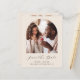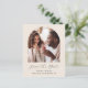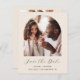 Este simples e minimalista Cartão Salvar a Data apresenta um boho de fotos acima das palavras "Salvar a Data" em um elegante guião branco, seguido pelos nomes do casal, data do casamento e cidade em sans serif em um fundo bege. Adicione uma segunda foto horizontal e uma mensagem mais detalhada com informações adicionais sobre o contrário.