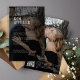 Código QR de tendência de estilo minimalista elegante para RSVP barato de orçamento online, tudo em um cartão de convite para casamento com noiva e nomes de noivo em negrito tipografia, cobertura preta e duas fotos de noivado (você pode carregar a mesma foto na frente e atrás). +++++ Adequado para qualquer época de casamento moderno.