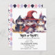 Truque Bonito ou Convite para Tratar para toda a família que apresenta as 3 bruxas de gatos mais bonitas com a sua ilustração de chapéus e capas. Você pode personalizar este Convite com seus detalhes.
