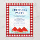 Convide familiares e amigos para o seu partido com este convite de 4 de julho. É decorada com melancias de aquarelas e um céu azul sobre um fundo de controlo de búfalos vermelho e branco. Facilmente personalizável. Este convite festivo é perfeito para qualquer tema de celebração do dia 4 de julho. Use a Ferramenta Design para alterar o tamanho, o estilo ou a cor do texto. Porque nós criamos a nossa trabalho de arte, você não encontrará esta imagem exata de outros designers. Original Watercolor © Michele Davies.