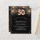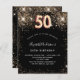 Um convite moderno, na moda e glamouroso para a 50ª festa de aniversário. Um fundo preto decorado com falso brilho. O nome é escrito com um moderno ouro escrito com letras no estilo à mão. Personalize e adicione os detalhes da sua festa. O número 50 é escrito com uma fonte de estilo balão, script.