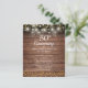 Apresentando luzes de cordas e corações delicados de ouro adoram confetti em um fundo de madeira rústica. Personalize com suas informações especiais de aniversário de 50 anos em ouro em carta chic. Projetado por Thisnotme©