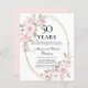 O Elegante convite para o 50º aniversário de casamento apresenta uma moldura de ouro e dois arranjos de rosas cor-de-rosa. Todo o texto é editável.