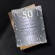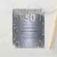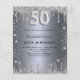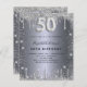 Um convite moderno, na moda e glamouroso para a 50ª festa de aniversário. Um fundo com aparência de prata falsa, decorado com poeira brilhante. Personalize e adicione seu nome e detalhes da festa. O número 50 é escrito com uma fonte de estilo balão, script.
