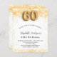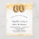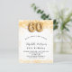 Para uma elegante 60ª festa de aniversário. Um fundo branco chic. Decorado com brilho de ouro falso, brilhos. Personalize e adicione um nome, idade e detalhes da festa. O nome é escrito com um script de estilo manuscrito. Número 60 com letra de estilo de balão.