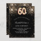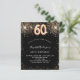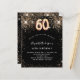 Um convite moderno, na moda e glamouroso para uma 60ª festa de aniversário. Um fundo preto decorado com falso brilho. O nome é escrito com um moderno ouro escrito com letras no estilo à mão. Personalize e adicione os detalhes da sua festa. O número 60 é escrito com uma fonte de estilo de balão, script.