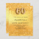 Um convite moderno, na moda e glamouroso para uma 60ª festa de aniversário. Um fundo metálico de ouro falso com pingos de brilho falso, aparência de pingar tinta. O nome é escrito com um moderno estilo escrito à mão. Personalize e adicione os detalhes da sua festa. O número 60 é escrito com uma fonte de estilo de balão, script.