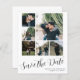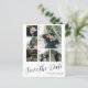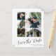 Escrita caligráfica simples e elegante de tendências, script de caligrafia de caligrafia casamento colagem de fotos de casal de seis noivados personalizada, salve a data barato do orçamento modelo. Fácil de personalizar em ambos os lados com seu texto e imagens.