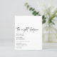 Este convite apresenta uma fonte escrita à mão e um design moderno minimalista. Altere facilmente as cores e edite o texto *maioria* para atender às necessidades da sua ocasião. Este convite é perfeito para a sua celebração de casamento contemporânea, industrial ou boêmica.