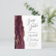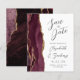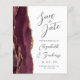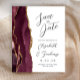 A borda esquerda deste cartão de data de casamento moderno e elegante apresenta uma borda de ágata em aquarela vermelha burgundy aparada com brilho de ouro falso. O texto personalizável combina caligrafia cinza carvão, copperplate e fontes itálicas em um fundo branco. O verso apresenta um design de ágata burgundy e dourado correspondente. NOTA: Os envelopes não estão incluídos automaticamente com esses convites econômicos, então lembre-se de escolher a opção "envelopes brancos em branco"!
