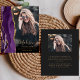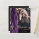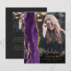Este convite de formatura de 2026 apresenta uma borda de geodo de ágata em aquarela em tons de roxo com destaques de brilho dourado falso. O primeiro nome do graduado aparece como uma sobreposição de letra manuscrita dourada elegante em uma foto vertical, junto com o sobrenome, escola e ano de turma em fonte copperplate. Um filtro gradiente preto ajuda o texto a se destacar. Uma segunda foto horizontal aparece no verso, junto com o anúncio e detalhes em texto dourado em um fundo escuro quase preto.