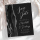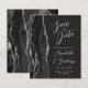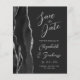 A borda esquerda deste elegante casamento moderno salve o cartão de data apresenta uma coloração d'água preta aparada com falso brilho prateado. O texto personalizável combina a escrita manual de cinzas prateadas, fontes copperplate e itálico em um fundo escuro. O verso apresenta um design de agata preto e prateado correspondente.