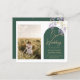 design ⭐ pelo Criador Zazzle LeahG®, fundador da Low Budget Wedding Network®. Parabéns no seu noivado. 📌 esta design para o seu conselho de humor de casamento no Pinterest e aproveite sua jornada de planejamento de casamento. A design aqui é uma bela arca floral, verde e dourada da Wisteria Púrpura, convite para casamento de fotos com código QR e detalhes extras no verso. Adicione sua recepção de casamento, rsvp, registro de presentes, alojamento de hotel e mais detalhes, conforme necessário. ⭐ Note que a minha gama de orçamentos inclui vários tipos de papel e carstock - veja o meu guia nos diferentes tipos de papel/cartolina aqui: https://www.weddingdesignchic.com/2022/04/budget-invitations-on-zazzle-by-leahg.html.
