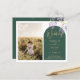 design ⭐ pelo Criador Zazzle LeahG®, fundador da Low Budget Wedding Network®. Parabéns no seu noivado. 📌 esta design para o seu conselho de humor de casamento no Pinterest e aproveite sua jornada de planejamento de casamento. A design aqui é uma bela arca floral, verde e dourada da Wisteria Púrpura, convite para casamento de fotos com código QR e detalhes extras no verso. Adicione sua recepção de casamento, rsvp, registro de presentes, alojamento de hotel e mais detalhes, conforme necessário. ⭐ Note que a minha gama de orçamentos inclui vários tipos de papel e carstock - veja o meu guia nos diferentes tipos de papel/cartolina aqui: https://www.weddingdesignchic.com/2022/04/budget-invitations-on-zazzle-by-leahg.html.