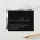 Orçamento Roteiro Amor Obrigado Foto Casamento Obrigado Preto. Amor e agradecimento estão em um conjunto de estilo manuscrito com os detalhes abaixo. Muito espaço em branco no topo para um toque contemporâneo! Personalize facilmente o restante do texto para seus próprios detalhes e substitua a foto de amostra no verso pela sua, que será automaticamente alterada para preto e branco. Se desejar remover o filtro preto e branco, clique em personalizar mais e escolha a opção de filtro e selecione Sem Filtro.