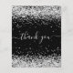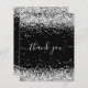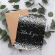 Um cartões de agradecimentos de aniversário feminino e elegante. Uma cor preta de fundo. Com pó de cinza. Na frente, o texto escrito em grande mão e o texto: Obrigado. Voltar: Personalize e adicione seu nome e nota de agradecimento. O nome é escrito com um moderno estilo escrito à mão com traços. Para manter as hastes, exclua apenas o nome da amostra, deixe os espaços ou emoji na frente e depois do nome.