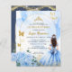 Anuncie a sua Quinceañera em estilo real com o nosso convite à Princesa de Vestido Azul do Orçamento Quinceañera. Este design encantador, com delicados tons azuis e sotaques brilhantes, dá o tom perfeito para sua celebração.