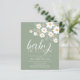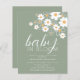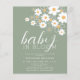 Você está planejando um chá de fraldas neutro em relação ao gênero? Este belo convite orçamental é decorado com margaridas desenhadas à mão num fundo verde. Diz "Baby in Bloom" na tipografia da na moda. Facilmente personalizável. Desenho original © Michele Davies.