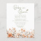 Bem-vindos a um precioso pequeno no mundo com este delicioso convite para chás de fraldas de orçamento! Nosso doce bebê em design de flor selvagem florescente apresenta um lindo motif floral de aquarela em tons de pêssego e terracota cercado por borboletas fluviais e detalhes balísticos. Perfeito para um chá de fraldas, este convite traz certamente um toque de beleza e charme para esta ocasião especial.