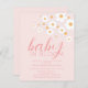 Você está planejando um chá de fraldas de menina? Este belo convite orçamental é decorado com margaridas desenhadas à mão num fundo cor-de-rosa suave. Diz "Baby in Bloom" na tipografia da na moda. Facilmente personalizável. Desenho original © Michele Davies.