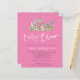 Bebê Em Bloom Pink Boho Chá de fraldas. Um alternativo de 4,5 pol x 5,6 pol com preço inferior. Disponível em um STOCK DE CARTÃO SEMI GLOSS 110 lb, que é a opção padrão (recomendada para convites, semelhante à espessura de um cartão postal), OU um STOCK DE PAPEL THINNER FINISH DE 80 lb FINISH (melhor para gabinetes finos). Ilustração no estilo Boho da prateleira com plantas e brinquedos para bebês e script de conjunto na moda informal para o cabeçalho Baby in Bloom em branco. Tipografia para o cabeçalho e cor-de-rosa de coordenação do outro lado. Você pode personalizar facilmente o resto do texto para suas próprias necessidades e alterar as cores de fundo se desejar por meio da opção personalizar mais.