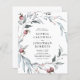 Orçamento Tudo em Um Código QR Winter Berries Greenery Wreath Wedding Convite... Nosso barato "frente e trás" morangos de inverno e o convite para o casamento por terra verde apresenta uma delicada camada artística de cinza prateada verde de inverno pontilhado com as frutas vermelhas da época de Natal moldando seu texto de convite personalizado. A parte de trás do convite contém todos os detalhes que você normalmente veria em cartas separadas dentro do pacote de casamento, incluindo o código QR do seu site de casamento — que você pode criar diretamente no modelo de Personalização do Zazzle. Este estilo moderno, tudo num convite de casamento, foi concebido para ser elegante e consciente do orçamento... bem como para poupar tempo. Todos os textos de exemplo em ambos os lados podem ser facilmente revisados com suas próprias informações sobre o modelo de personalização.