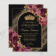 Clássico Moderno Glam Black Burgundy Maroon Red Glitter Sparkle Floral 15 de Aniversário Quinceanera Convite