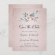 Rosas Rosa Pintadas, Boho de Orçamento Blush Rosa Dourado Casamento de Ombre Glitter Salve a Data... Se você ama um olhar de boêmia e vai se casar, aqui está um belo e barato "Salve o cartão de data" a ser considerado. Nosso cartão de resgate de data inclui rosas cor-de-rosa poeirentas estilo boho e arranjo floral verde em um fundo elegante de ombre brilhante rosa. A parte de trás do cartão contém uma mensagem pessoal e informações do seu site de casamento sobre o mesmo fundo ombre brilhante. Todo texto de exemplo pode ser facilmente revisado com suas próprias informações sobre o modelo de personalização.