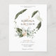 Este design elegante apresenta um verde lúcido com um gosto dos trópicos na forma de uma bela coroa floral. Personalize facilmente com seus detalhes importantes, incluindo sua incrível foto na parte traseira do cartão. O tema perfeito do casamento para todas as estações.