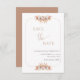 Anuncie o seu noivado e o próximo casamento com este elegante, salve o anúncio da data. Este cartão apresenta um tema floral boêmico com cores de tons de terra mudos. Personalize o texto para compartilhar a data e o local do seu casamento.