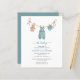 Roupas de bebê doces penduradas em um varal nesta convite de chá de bebê boho. Apresenta macacão de tricô, sapatos e ursinho fofo. Este convite encantador tem tipografia cursiva com as palavras "oh baby" em azul suave, bem como letra cursiva para o nome da mamãe. Veja itens coordenados em nossa loja. **POR FAVOR, LEIA ANTES DE COMPRAR** A papelaria econômica mede 4,5 x 5,6 e cabe dentro de um envelope A6. Não vem com envelopes, mas você pode adicionar envelopes brancos ao seu pedido. Cada folha é um item - não é necessário corte. O cartão padrão é branco brilhante com acabamento semi-brilho e peso de 110lbs, adequado para papelaria. Por favor, note: se você mudar para a opção de papel de seda, é um papel mais fino de 80lb, mais parecido com páginas de revista do que cartão. Use o Serviço de Design ao Vivo se precisar de ajuda com seu design após fazer alterações ou se o design não parecer mais correto ou estiver cortado. Você pode atualizar seu pedido para um tamanho maior, papel de alta qualidade e envelopes clicando em transferir e escolhendo cartão plano 5 X 7 ou clicando no link da nossa loja Enchanted Finch para outras opções de papel. Seu pedido vai diretamente para a gráfica. O que você vê na tela é o que será impresso e enviado a você. Por favor