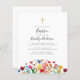 Um convite à flor selvagem moderna e ao batismo cruzado. **POR FAVOR LEIA ANTES DE COMPRAR** 1. Medidas de papelaria orçamental de 4,5" x 5,6" e dentro ajustado e envelope A6. Você pode adicionar envelopes brancos ao seu pedido. 2. Cada folha é um item - não é necessário corte. 3. O estoque de cartão padrão é branco brilhante com acabamento semirbrilhante e peso de 110 lbs adequado para papelaria. 4. A opção de papel satin é um papel de 80 lb mais fino, que é mais parecido com as páginas de revistas do que com o estoque de cartão. 5. Se você fizer alterações e o design for cortado ou não parecer direito na tela, use o Serviço de Design ao vivo para ajudá-lo a corrigi-lo. 6. Seu pedido vai diretamente para as impressoras. O que você vê na tela é o que será impresso e enviado a você. Verifique triplamente se há erros de ortografia ou informações incorretas antes de fazer seu pedido.
