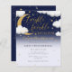 Este é um convite de primeiro aniversário adorável e econômico baseado na rima infantil “Twinkle twinkle little star”. O design apresenta uma fonte de caligrafia manuscrita fofa, uma lua dourada com estrelas douradas e nuvens fofas e fofinhas em um céu estrelado cintilante. Este convite de aniversário neutro em termos de gênero seria perfeito para qualquer pequena estrela que esteja prestes a celebrar seu primeiro aniversário!