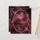 Este elegante casamento moderno salva o cartão de data apresenta uma estrutura geométrica prateada decorada com buquês florais de burgundy e prata em um fundo vermelho de película vermelho burgundy. O texto personalizável combina a escrita manual imétrica de cinzas prateadas, a placa de cobre e as fontes itálicas.