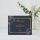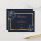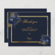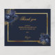 Um cartões de agradecimentos simples e elegante com foto. Um fundo azul escuro, uma falso estrutura dourada e florais azuis. Personalize e adicione sua nota de agradecimento.