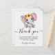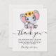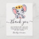 Cartão de Agradecimento para Chá de Bebê do Elefante Rosa com Girassol - Agradeça aos amigos e familiares por serem parte do seu chá de bebê com este lindo cartão de agradecimento.