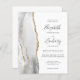 A borda esquerda deste elegante convite de casamento moderno apresenta uma borda de ágata em aquarela cinza e branca aparada com brilho falso dourado. O texto personalizável combina fontes manuscritas, copperplate e itálico em cinza carvão em um fundo branco. O verso fornece espaço para detalhes do casamento em um fundo branco sólido, juntamente com um código QR que os convidados podem escanear para visitar seu site e responder. NOTA: Os envelopes não estão incluídos automaticamente com esses convites econômicos, então lembre-se de escolher a opção "envelopes brancos"!