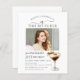 A foto do aniversariante é o destaque deste convite de aniversário de martini moderno. Design elegante e sofisticado apresenta um martini de espresso. Um laço bonito adiciona um toque feminino. Todo o texto é editável.