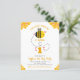“Nossa pequena abelha.” Aqui está uma ótima maneira de celebrar o aniversário do seu filho com amigos e familiares. Envie este convite de aniversário simples, divertido, festivo, moderno, neutro em termos de gênero e personalizado dentro do orçamento. Um visual doce e lúdico de uma adorável abelha kawaii com uma sobreposição de caligrafia laranja-amarela sobre um fundo branco. Um charmoso padrão de favo de mel amarelo, damasco e laranja em patchwork está no verso. Este convite encantador certamente estabelecerá o tom certo para o seu evento! Pratos, guardanapos, adesivos, bilhetes de agradecimento e outros itens de aniversário correspondentes e coordenados também estão disponíveis nesta coleção especial e divertida.