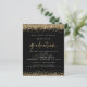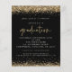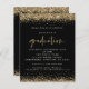 OBSERVE QUE Existem duas opções de papel para escolher para este tamanho (4,5 x 5,6”) na faixa de orçamento. Para este produto, eu recomendaria o semi-brilho, que é um cartão de 110 gsm, semelhante em espessura a um cartão postal. A opção Satin é um papel muito mais fino, 80 gsm. O padrão é definido como semi-brilho. NOTA: há UM por folha. Convite de Formatura com Brilho Preto Dourado Econômico. Bordas elegantes de confete dourado falso brilhante estão no topo e na parte inferior e também na parte de trás. Formatura é definido em um estilo de escrita manual moderno. Personalize facilmente o restante do texto para o seu.