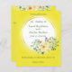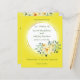 Rosas e folhas com moldura circular dourada em fundo amarelo, no verso você pode escrever informações adicionais para seus convidados