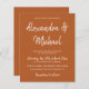 Elegante trendy tipografia do orçamento barato convite para casamento em simples terracota laranja queimada e letras brancas com nomes de noiva e noivo com roteiro de caligrafia. ++++++++++++++++++++++ Você pode alterar as cores do texto e do plano de fundo após selecionar a opção PERSONALIZAR mais. +++++++++ O convite é adequado para qualquer época - primavera, verão, outono, inverno - recepção de casamento interior.
