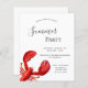 Um convite elegante para uma costa náutica pela festa de verão do mar, festa de praia ou mariscos. Um fundo branco e uma grande lagosta vermelha como decoração. Personalize e adicione os detalhes da sua festa, informações.
