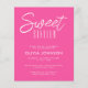 Convite de aniversário moderno e contemporâneo com tipografia em rosa brilhante e fonte de texto branca. Personalize com os detalhes do seu evento. Esta é nossa opção de orçamento em um tamanho menor e peso de papel diferente. Veja a coleção completa para outros tamanhos e tipos de papel. Itens correspondentes disponíveis. Entre em contato para ajuda com personalização adicional e pedidos especiais. © Zoe Chapman Design