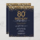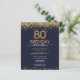 Elegante brilho dourado falso com destaques de confete cintilantes na borda superior e inferior. Todo o texto é ajustável e fácil de alterar para as necessidades da sua festa. Ótimo design de modelo de aniversário de 80 anos elegante.