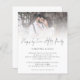 Uma alternativa de orçamento com bom custo-benefício em um tamanho menor 4,5 x 5,6” semi-brilho 110lbs de peso, que é de espessura semelhante a um cartão postal (no entanto, não é adequado para uso como cartão postal). POR FAVOR, OBSERVE que há UM convite por folha. Orçamento Foto Convite de Casamento Happily Ever After. Uma tipografia informal em preto para o título principal, a festa Happily Ever After complementa o restante do texto que você pode personalizar facilmente. Substitua a foto de amostra pela sua favorita.