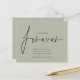 O Orçamento Decidiu Sobre O Anúncio De Noivado De Sage Pale Para Sempre. Um alternativo de 4,5 pol x 5,6 pol com preço inferior. Disponível em um STOCK DE CARTÃO SEMI-GLOSS 110 lb, que é a opção padrão (mais espesso para convites), OU um STOCK de PAPEL THINNER FINISH 80 lb FINISH (ideal para gabinetes). Um simples design sobre um fundo de sábio verde para que todos saibam a feliz notícia do seu engajamento. Decidimos no Forever que está em um script de na moda está no centro.O resto do texto que você pode personalizar facilmente. As cores de texto e de fundo podem ser alteradas se você quiser se adequar melhor ao seu tema de casamento através da opção personalizar mais.