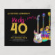 Convites de festas de aniversário de 40 anos de ouro e rolo-guitarra coloridas, preto e rolo, com tipografia moderna e notas musicais douradas e cor-de-rosa. trabalho de arte de guitarra a aquarela legal com guitarra elétrica psicodélica funky, guitarra acústica e designs de guitarra semissótica sobre fundo negro. O convite de festas personalizado Rocks 40 rock and roll aniversário de 40 anos com modelo personalizado fácil de usar cria o convite perfeito para celebrar quarenta no estilo rock n roll. Ideal para um guitarrista, músico e amante da música este legal instrumento musical moderno design celebra a energia musical deste maravilhoso instrumento musical e é a forma perfeita de balançar uma celebração de 40 anos. Arte original da artista Catherine Sweetman